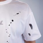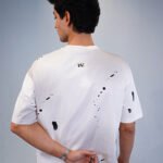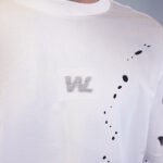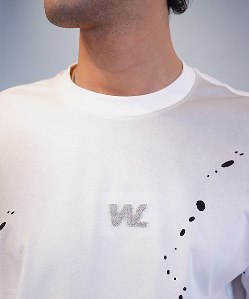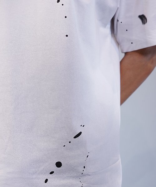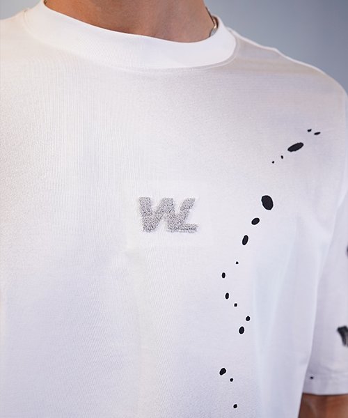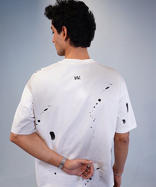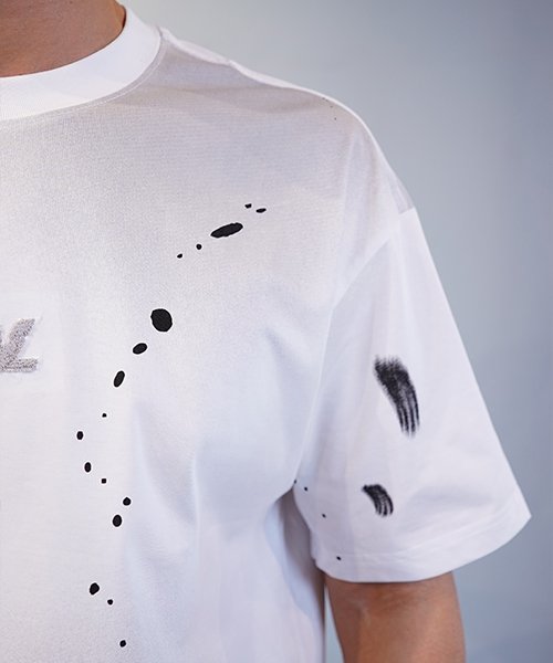 Cut from a premium structured white cotton knit, this relaxed-fit tee features a cascading black splatter design for your striking aesthetic. Anchored by a tactile, textured center chest logo and finished with a adjustable neckline that holds its shape.