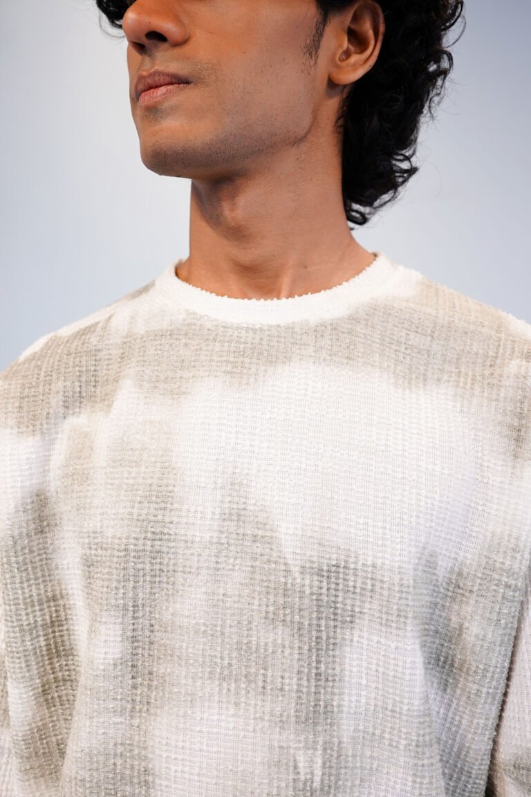 Designed with a soft color gradient that flows naturally across the fabric, this T-shirt brings depth and character to a clean, minimal silhouette. The subtle tonal variation adds a modern, elevated feel—making it stand out in a quiet, refined way. Crafted from lightweight, breathable textured fabric, it keeps you comfortable while looking effortlessly put together.