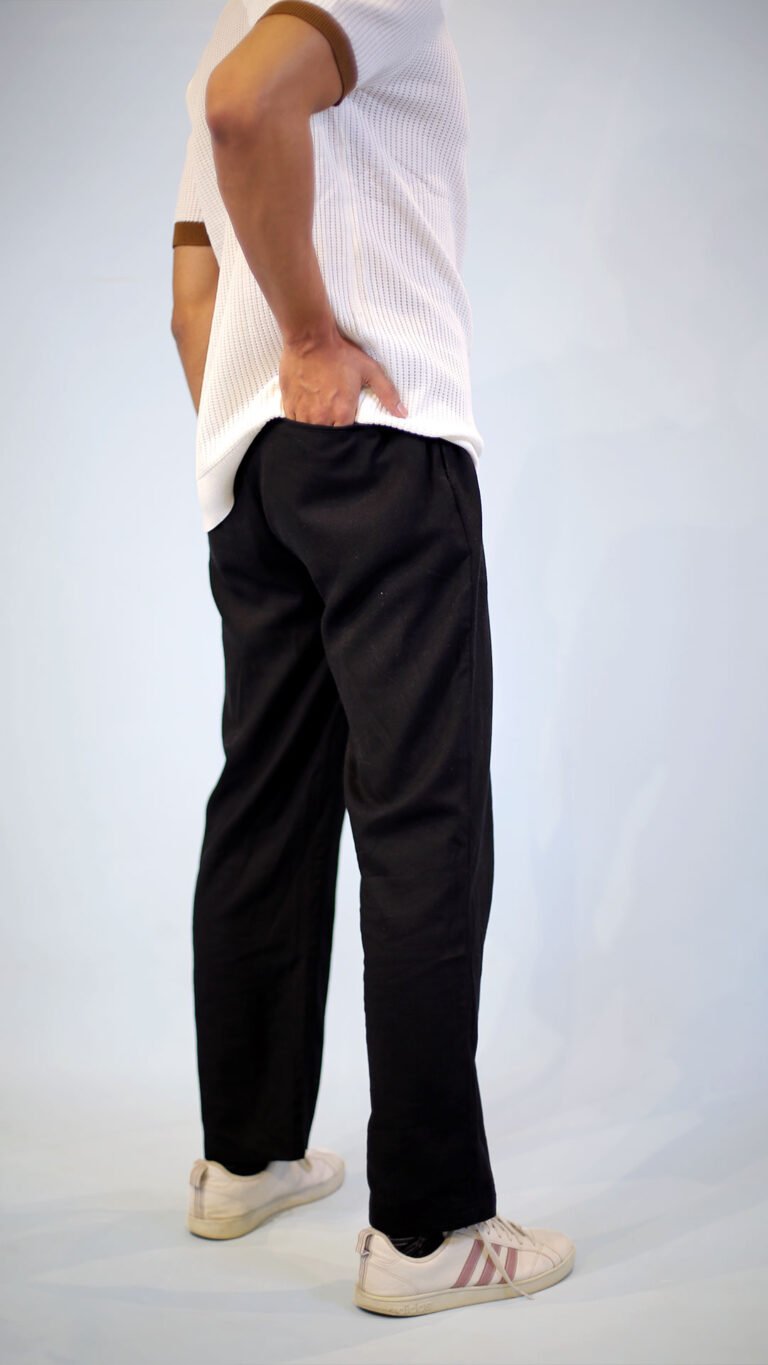 Straight Black Cotton Pants